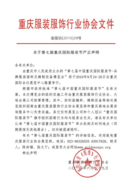 重庆服装(服饰)行业协会 实施:重庆高地会展咨询服务中心