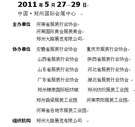 在这里我们会为您创造更多的商业洽谈和合作机会,您将因此得到更大的市场空间并获得更多新的利润和效益。我们期待与您相会在“2011中国(郑州)国际缝制设备展”上!