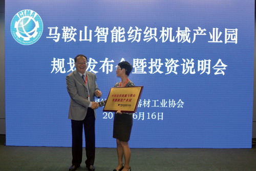 高勇为中国纺织机械马鞍山智能制造产业园进行授牌