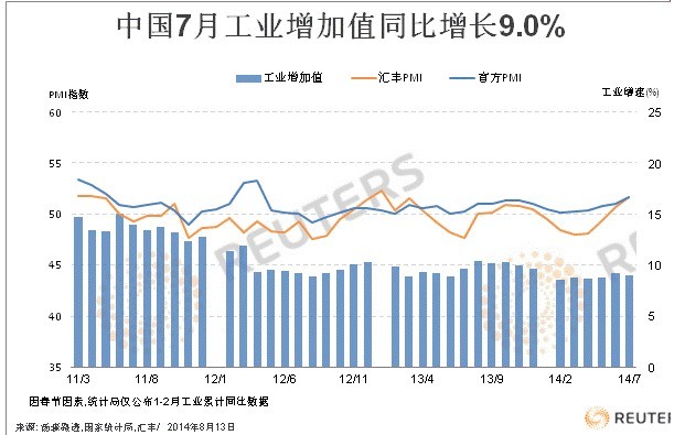 --7月工业增加值同比增长9.0%(路透预估中值为增长9.0%)