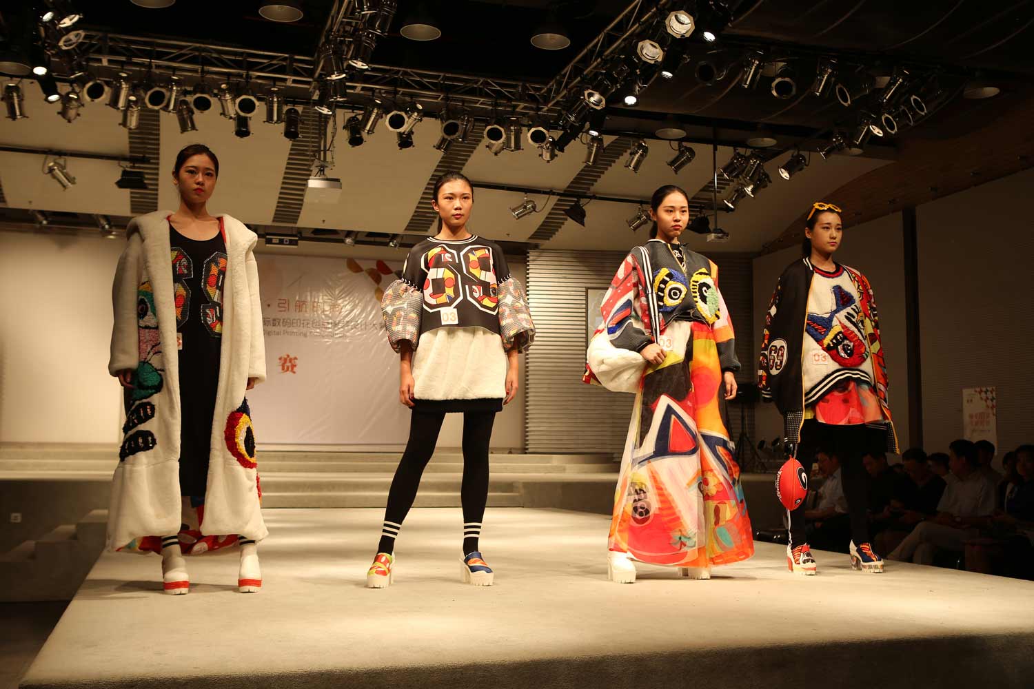 时尚、动感、创意的决赛现场,20位入围选手携66套作品精彩亮相。设计师们运用知名数码印花展商黑迈(中国)科技有限公司所提供的高端印花面辅料进行创意设计,给评委和观众们带来了强烈的视觉冲击。最终,经过激烈的角逐,浙江理工大学高莹莹的作品《童画》摘得金奖,上海工程技术大学秦佳慧的《融&<9642;岩》等七项作品获得银奖,上海视觉艺术学院胡承志的《交错》等12项作品获得铜奖。