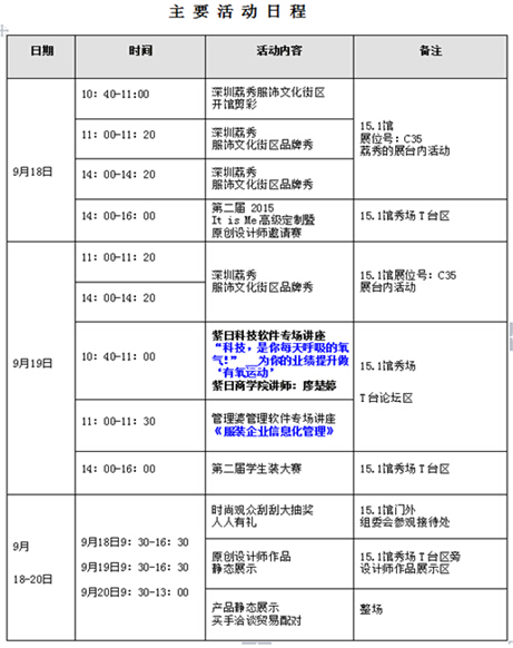 作为华南地区最高规格的专业品牌服装展会,一年一度的广州国际服装节暨广州时装周今年9月18日又将拉开时尚大幕; 席卷风暴中心-广州琶州,预计将吸引专业观众3万余人。您,怎可缺席! 让我们来关注本次展会的主要亮点和预览重点推荐企业: 一、打造服装产业链一站式采购贸易交流平台的全球行业盛会。 广州国际服装节自2000年创办第一届,由广州市人民政府主办,历时15载,大会组委会积累了雄厚的专业观众数据库,自2012年由陈建华市长亲批重启广州服装节,由展览名企广州怡佳展览服务有限公司重新专业化定位,展会重启三年来,迎来全球近20个国家的服装服饰品牌、制造商、设备面辅料、原创设计师、电子商务企业与会参展;累计超过来自15余个国家的采购商贸易商、代理经销商、生产商制造商、时尚买手、高级定制消费者以及服装产业链的数十万专业观众与会,累计超过3000家企业参展,55个国内外纺织服装协会、30个以上驻广州领事馆商务处、超过10个以上专业市场组团参观参展,真正的全球盛会。 广州国际服装节暨广州时装周致力于打造服装产业的完整产业链,包括服装服饰品牌专题展、oem/odm贴牌加工专题展、纺织制衣设备面辅料专题展、原创设计师暨私人定制专题展、电子商务专题展;不同版块互为采购商,节省企业采购成本,打造纺织服装业一站式采购平台。 休闲品牌展区: 最先映入眼帘的首家企业是大型国有企业广州纺织工贸企业集团有限公司,他们此次带来了利工民、鹿牌、秋蝉、珊瑚、牛头牌(NEWTO)等品牌强势亮相;其中,牛头牌(NEWTO)是一个拥有80多年的民族品牌 ,起源于1933年,是中国内地第一个牛仔品牌。专门针对中国国内都市知性阶层,偏爱休闲,注重穿着体验的年轻一代。 而源自美国夏威夷的沙滩休闲服品牌Jams World休闲印花服饰、Sisia泳衣品牌,有五十多年历史,在夏威夷当地无人不晓。其绚丽多彩的印花、原汁原味的手绘艺术及特殊的木浆超细纤维工艺使我们的服饰独一无二,深受广大消费者青睐。 男装展区: 特别推荐帝迦夫-英国贵族喜爱的奢侈品品牌,英国王室成员乃至世界各地的名流都为此御用品牌的忠实追随者;包含了可提供定制的夹克、衬衣,自由不羁的休闲服,必吸引全球对于英式精致生活艺术有共鸣的人士。 贴牌加工展区: 拥有萨维尔街顶级制作工艺的青田卡谛尔公司带来了高端的时尚西服及礼服定制,专业承接高级定制、全麻衬、半麻衬时尚西服及一线品牌的贴牌加工。威海以利服饰集服装设计制版生产订制销售为一体,客商遍布全球。广州美珂盛思的ODM/OEM团队更能为合作伙伴分担来自设计和制造环节的所有工作,使他们能专注于品牌的营销推广;同时还能自主研发最新流行款式供给各大买手型服装连锁机构订货和ODM/OEM贴牌加工生产。广州西帅带来了自营韩版时尚商务品牌“西帅”和高级定制品牌“格蓝迪”两大品牌,专注于 高级定制,团体制服,品牌加工,OEM、FOB ,西服,西裤,大衣,夹克,衬衫及各大类型正装及休闲系列产品;广州乐缘体服饰 带来的 LESIM 女装羽绒服的裁剪设计简约大大气,在衣服的质地上选择轻柔垂坠面料,通过拼接,褶皱,特殊剪裁的手法赋予色调的衣服生动时尚感。 广州凯俪思服饰专注于女装、童装、女装、童装等产品专业生产加工;擅长加工日韩,欧美等国家为主的中高档客户的产品;海兴盛宏服装此次主要带来婴童和中大童的羽绒服、棉服、滑雪服、冲锋衣, 风衣,工作服等梭织服装,合作形式包括:服装加工、贴牌生产、开发设计和全值经销等。 广州吉瑞得服饰主打生产中高档男女真皮皮衣的贴牌加工。广州市明古进出口有限公司每月出货量达到十万,产品主要出口欧美,长期接外单,加工出货。 女装展区:特别推荐台北凯煊服饰的尚伊梵SOYVAN女装,凯煊坚持选用高品质的天然纤维面料和功能性布种(木棉纤维、亚麻、绸缎、羊毛、羊绒等)和环保染色工艺,注重面料后整理和肌理变化,使服装的结构变化与细节修饰的有机结合,设计感与实穿性的相得益彰,将女人的知性气质和艺术内涵完美诠释。广州山色服饰带来了【慢吞吞MANTUNTUN】品牌,秉承:“讲品质、慢生活”,享受品质生活、推崇轻奢侈主义、突出中华文化并以“穿在身上的中华文化”作为设计理念和持续的风格。 时尚配饰展区:米柏娜集团带来了深受中国、香港红星欢迎的拥有独有设计的梦幻饰品,包括项链、手链、戒指、眼镜、手袋及手表。广州那珈泰贸易主营仿珍珠,金属配件及耳环、项链、手链、吊坠、手镯、袖扣等时尚饰品。广州市七梦岛(香港塔木德实业子公司)则带来了青金石、大漆、星月菩萨、海南黄花梨、小叶紫檀等佛珠、宝石、珠宝饰品。 面辅料展区:深圳同益新中控实业的“丝绸坯布”产品诚邀海内外买家光临;广州灏嘉(香港嘉丽行),带来最先进的热转移印花、服装面料、刺绣产品与技术。 杭州佳绘彩艺的蕾丝定位印花、数码植绒印花技术必领您耳目一新。锦翔纺织此次带来山羊绒、丝/山羊绒、丝/兔绒、绢/棉、绢/粘、麻/粘、棉/羊绒,羊毛/羊绒各种纤维混纺纱及优质毛衣产品。香港环宇钮扣的产品广泛适用服装、鞋、帽、手袋、背包、皮革、玩具、工艺品等;时上服装展具和东莞万豪五金、中山英视照明则为服装企业带来专业衣架、店面展具、展示照明等系列解决方案。 电子商务暨信息