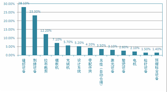 缝中:缝纫机整机、刺绣设备、激光设备、充绒机、模板机、中厚料设备、家用设备、超声波设备;