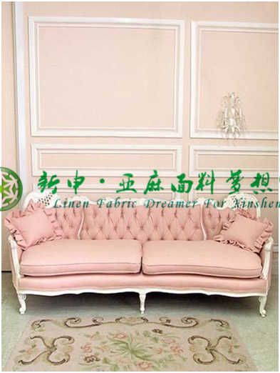 复古法式粉红亚麻沙发