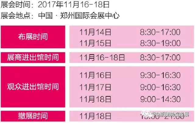 通知:2017中原(郑州)国际缝制设备展展会时间已过半,展会闭幕时间为20171118900-1430,未参观的观众朋友可以在明天(18号)上午到会参观采购。