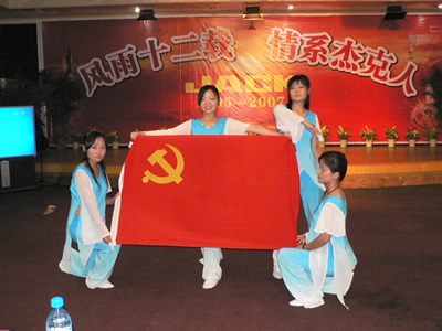 晚上七时,公司四楼多功能大厅里,人头攒动,灯光灿烂,欢歌笑语连成一片。杰克公司12周年厂庆文艺晚会在60多名新进大学生的大合唱《团结就是力量》中拉开序幕。本次文艺晚会的主题是“风雨十二载、情系杰克人”。共有500多名管理干部和员工观看了演出。