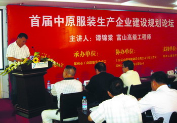 8月21日,由郑州纺织产业园管理委员会主办,郑州市工商联服装业商会承办,上海富山缝纫机制造有限公司、郑州市宝中缝制设备有限公司协办的“首届中原服装生产企业整厂建设规划讲座”在中国元通纺织城三楼会议室举行。上海富山缝纫机制造有限公司宇晴工作室高级工程师谭锦棠先生作了“整厂规划”讲座,郑州部分规模较大的服装生产企业参加了本次讲座。讲座中,谭锦棠先生用大量的案例图解进行生动的演讲,赢得与会者的高度评价和一致赞誉。