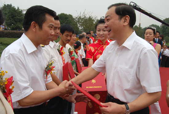 为纪念中央《公民道德建设实施纲要》颁布实施六周年暨第五个“公民道德日”,展示浙江省公民道德建设成果,9月16日上午,由省委宣传部、省文明办、杭州市委宣传部、省广电集团联合主办的“道德礼赞”——浙江省暨杭州市“公民道德宣传日”大型主题活动在杭州花圃时花广场隆重举行。