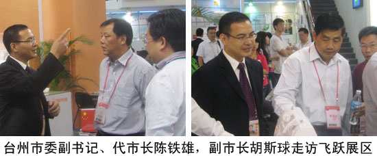期间,市委副书记、代市长陈铁雄,副市长胡斯球,市长助理、市政府秘书长虞选凌率政府有关部门负责人走访了飞跃展区,了解了参展情况。陈铁雄说,飞跃作为台州企业的一面旗帜,在广交会上充分展示了品牌形象。希望飞跃抓住机遇,依托广交会这一渠道,充分利用国际国内“两个市场、两种资源”,进一步拓展国际市场,为顺利完成今年全市的外贸工作目标以及实现外经贸“十一五”规划多作贡献。