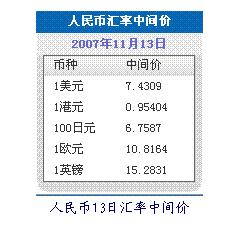 人民网·天津视窗11月13日电:中国外汇交易中心公布,人民币兑美元13日中间价为人民币7.4309元。人民币兑美元12日中间价为人民币7.4140元,创出07年以来第71次新高。