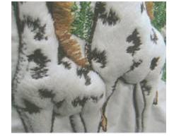 立感绣是田岛公司新创的一种绣法,是利用充线机将普通的绣花线吹到贴布花样图案里,使之有凸出的立体效果。